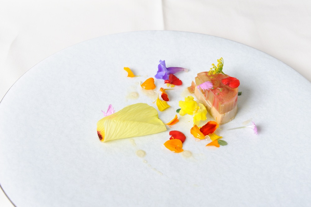 Terrine de foie gras aux rhubarb, Salade fleurs de jardin d'été