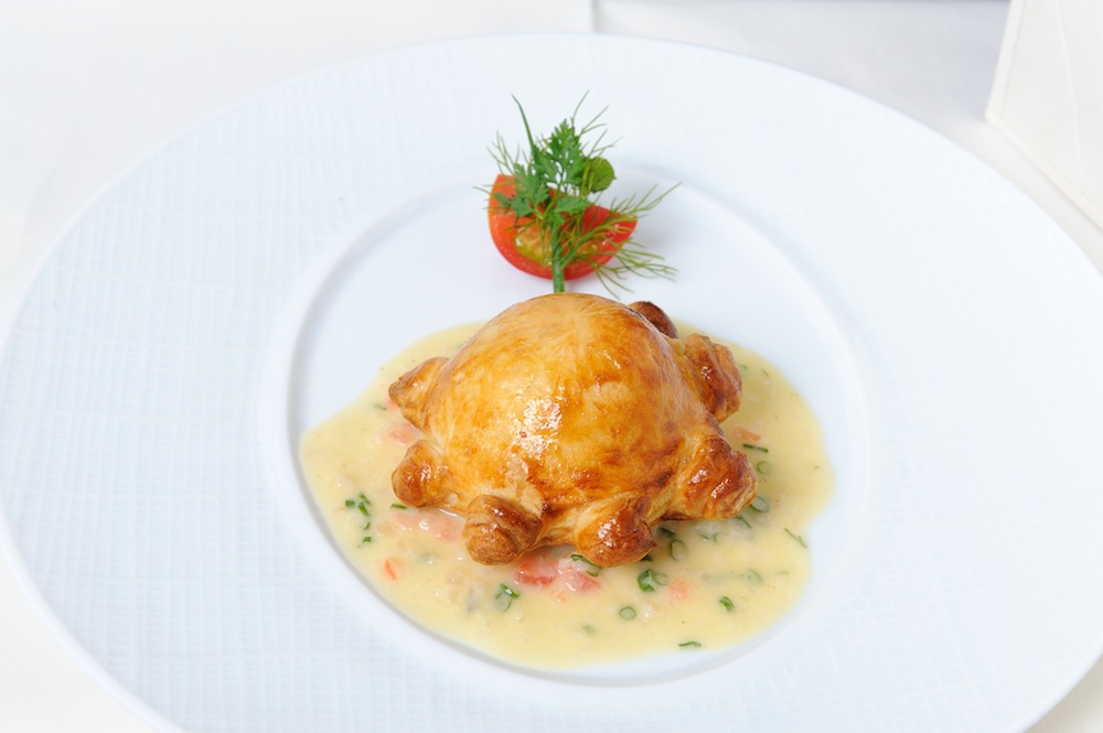 真鯛のパイ包み焼き エシャロットと白ワインのソース(川端シェフ)Dorade japonaise en croûte sauce au beurre blanc