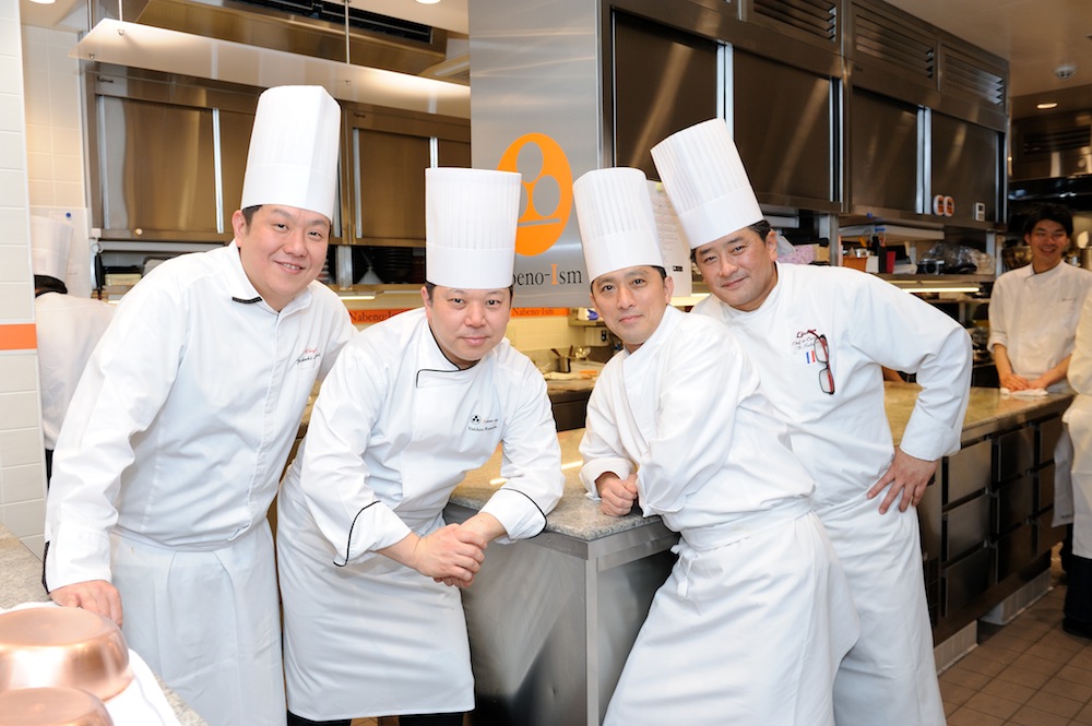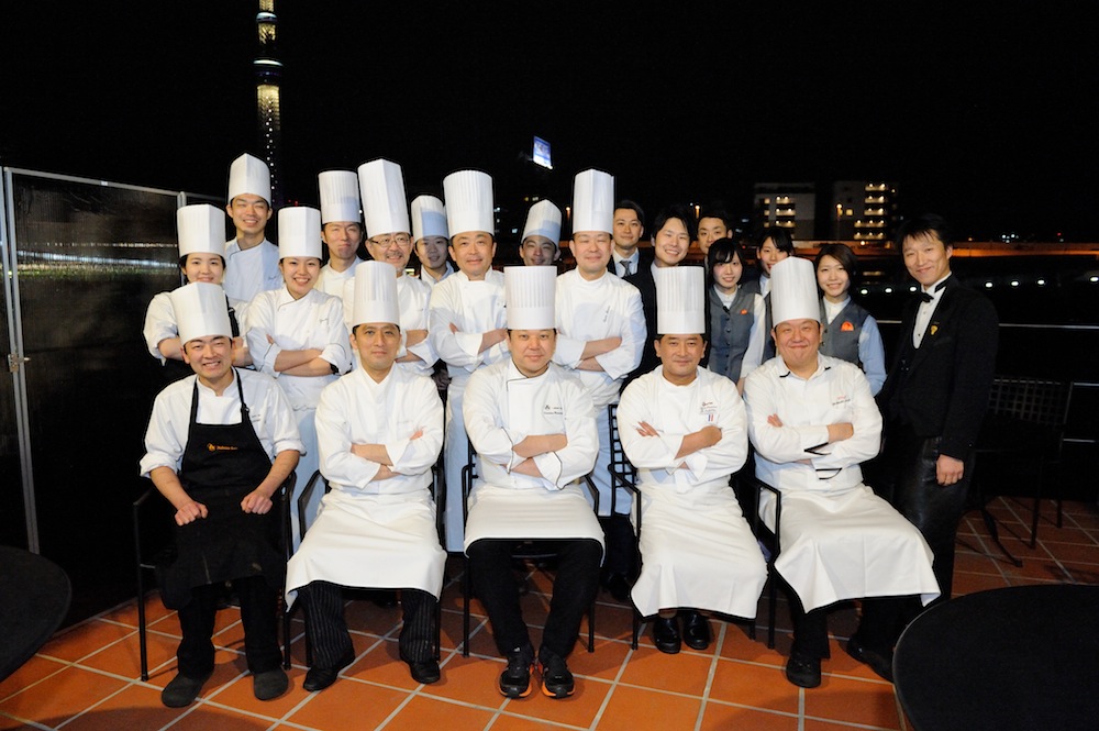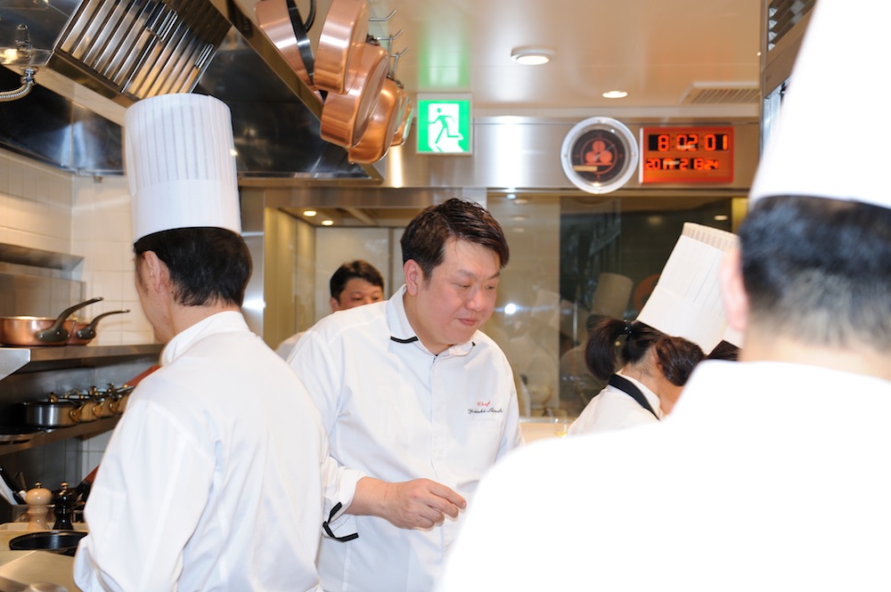 今回は、会長の銀座レカン高良シェフ、フランス料理文化センターの古屋シェフ、ジョンティアッシュの進藤シェフ、そして渡辺シェフの4名で、素晴らしい料理を作り上げていくと共に前回同様、シェフ一人一人が料理に合わせたワインを用意してお楽しみ頂きました。