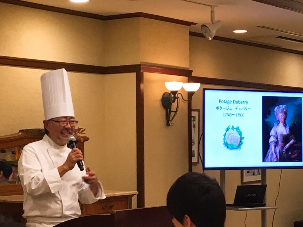今年は、多数の著作の中には“お菓子でたどるフランス史”や“パスタでたどるイタリア史”なども手掛けられ、食の歴史にも精通されている、東京大学総合文化研究所教授の池上俊一先生をゲストに迎え、フランス宮廷料理の歴史について、ご講義いただきその後に宮廷料理にちなんだ料理の数々をお出ししました。