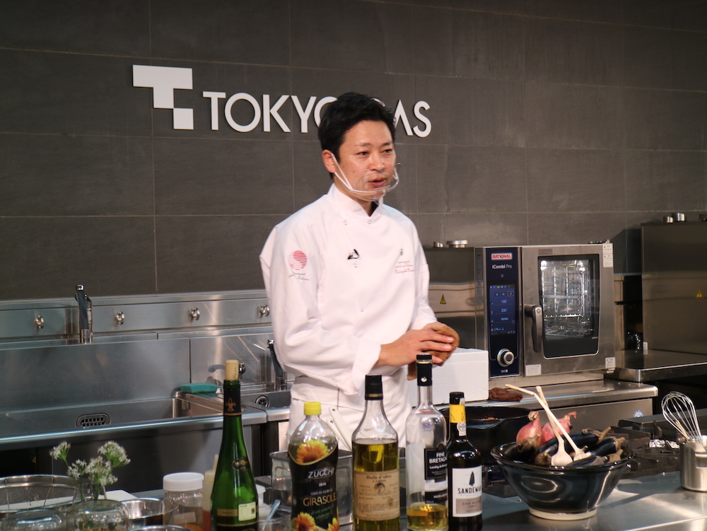 FFCCアミティエ×クラブ アトラス初のオンライン料理セミナーは、横浜『ペタル ドゥ サクラ』難波秀行オーナーシェフを講師に迎え、東京ガス業務用テストキッチン「厨BO!YOKOHAMA」を拠点に調理デモンストレーションと「クラブ アトラス」シェフのインタビューを行いました。