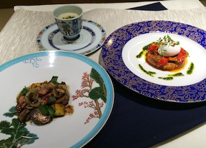 クラブアトラス会長を務めるレストラン・ラフィナージュの高良康之シェフと、昨年入会したばかりの新進気鋭のナチュラム・杉浦和哉シェフにより、それぞれ2品ずつのアントレが披露されました。