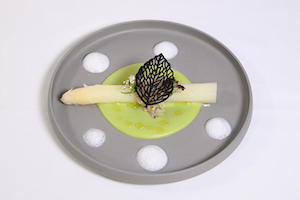 まずは「Le traiteur024 ル・トレトゥール024」のオーナーシェフ・大西孝典氏が、旬のグリーンアスパラガスをフォワグラと合わせ、目にも美しいテリーヌを、「Q.E.D. CLUBフレンチ」シェフの大村龍一郎氏が、17種の野菜を豚頭のコンフィと煮込んだガルビュールをそれぞれ披露してくださいました。